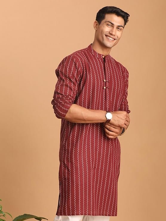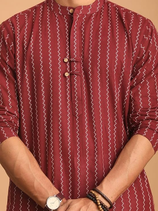 • Fabric: Cotton | Contents: a Zic Zag Pattern Woven Kurta For Men.